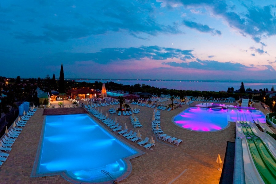 Campsite with marked-out pitches directly on lake Garda. New toilet facilities, lovely swimming pools with slides, children's pool and fitness centre. Dogs are welcome. CampingCard ACSI gives 10% off in restaurant during low season. Booking ahead not possible. One third of the pitches are available for CampingCard ACSI holders.